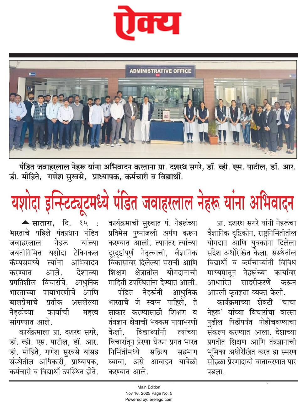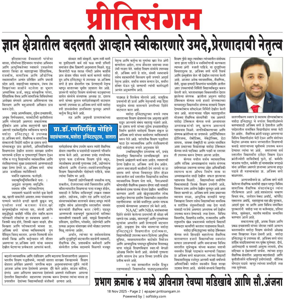 यशोदा टेक्निकल कॅम्पस चा विविध कंपन्यांशी सामंजस्य करार - https://sataranewsmediasevan.com/अग्रगण्य--यशोदा-टेक्निकल-कॅम्पस-सातारा