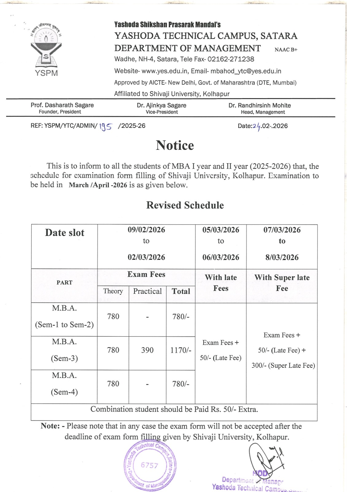 Notice - MBA Examination form filling Revised Schedule |