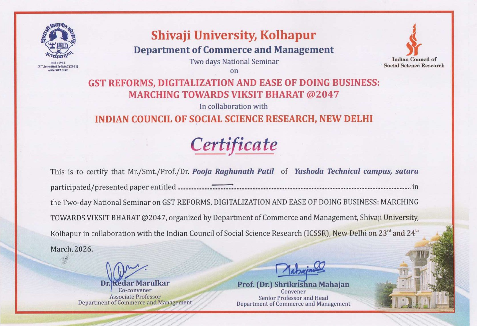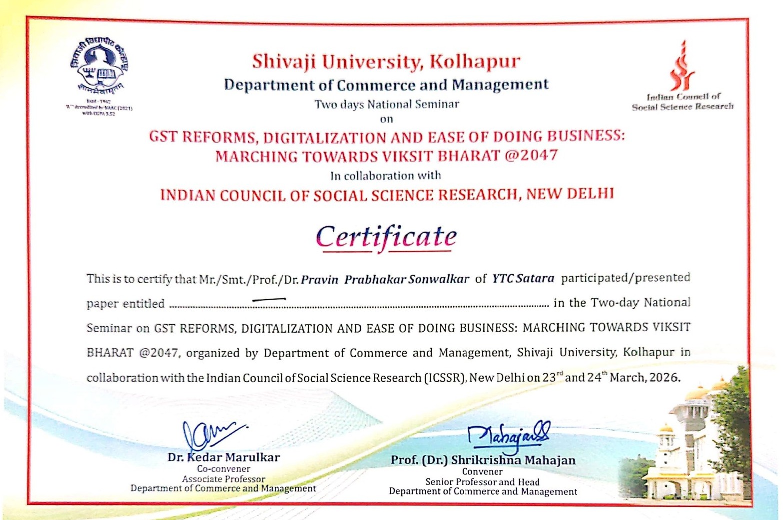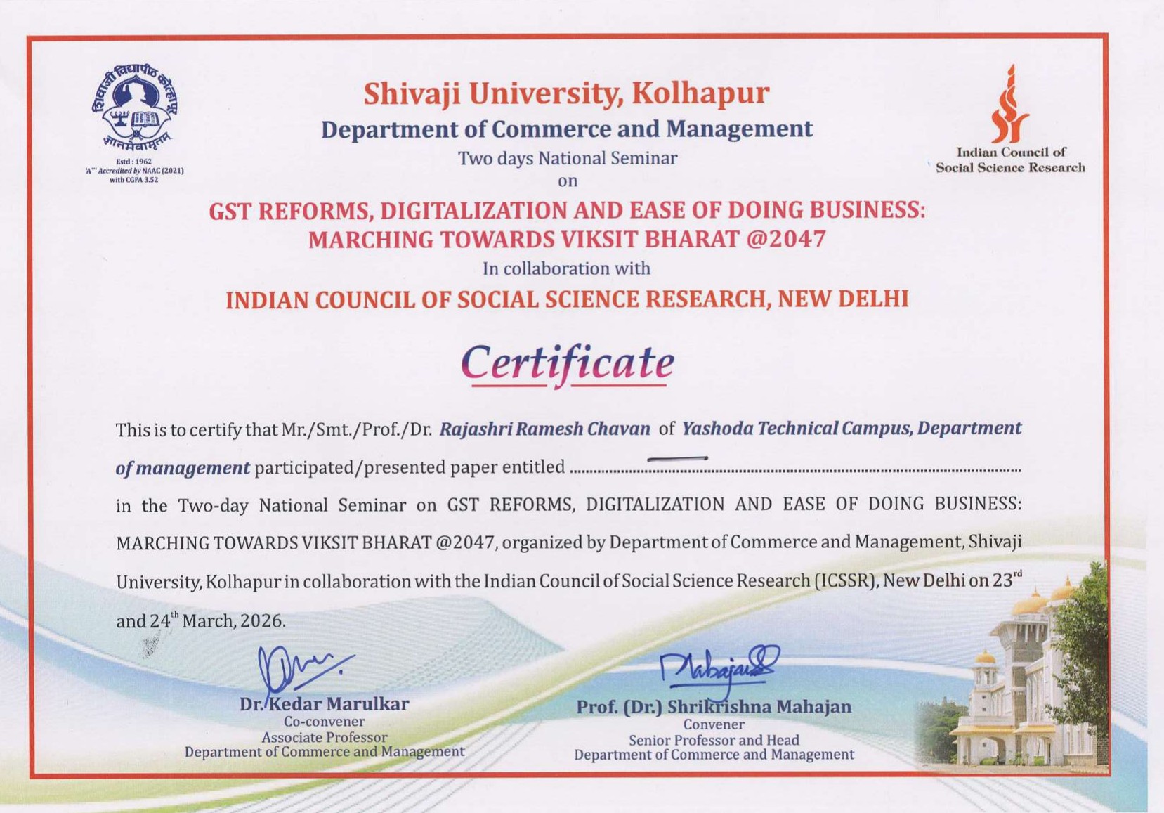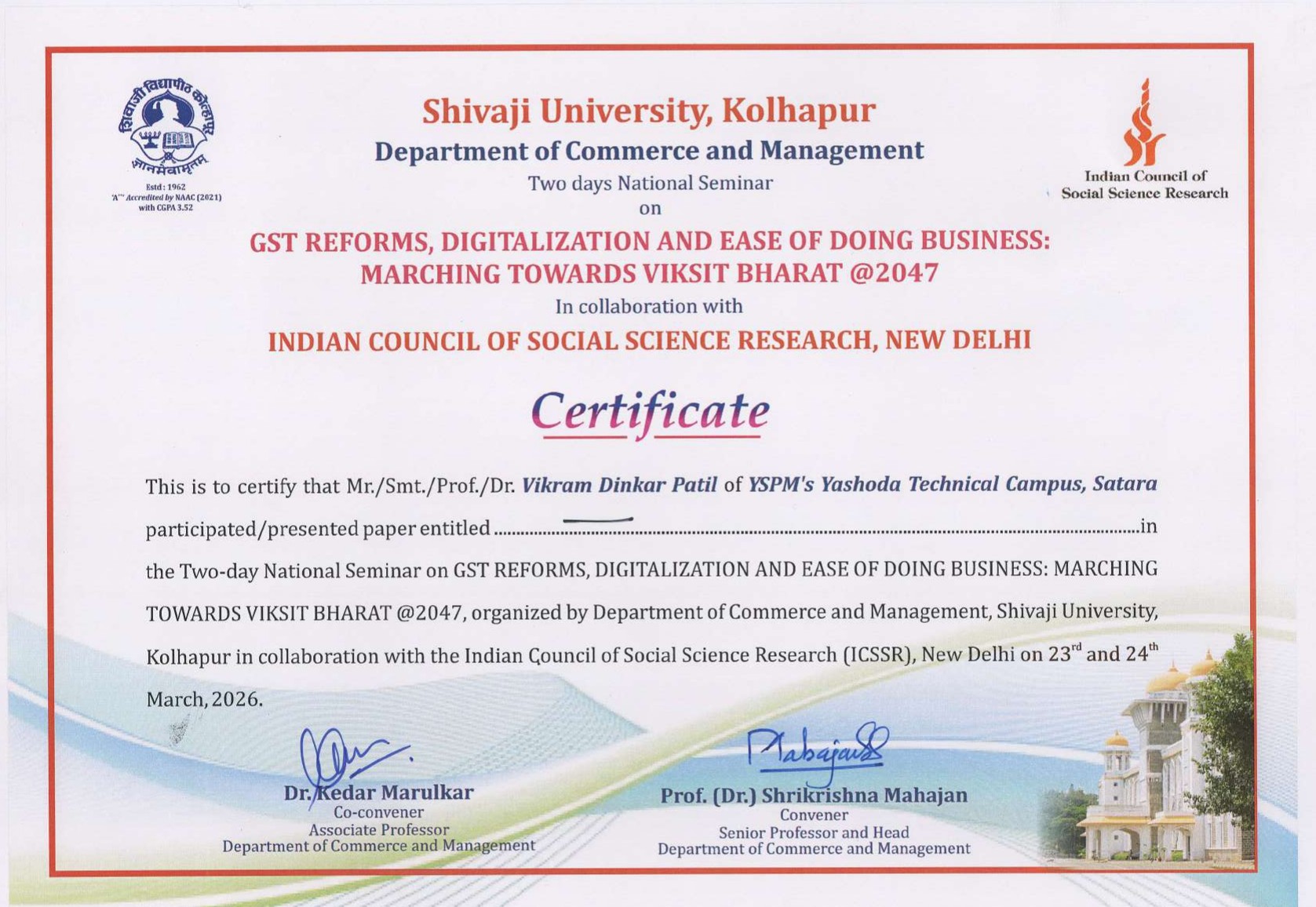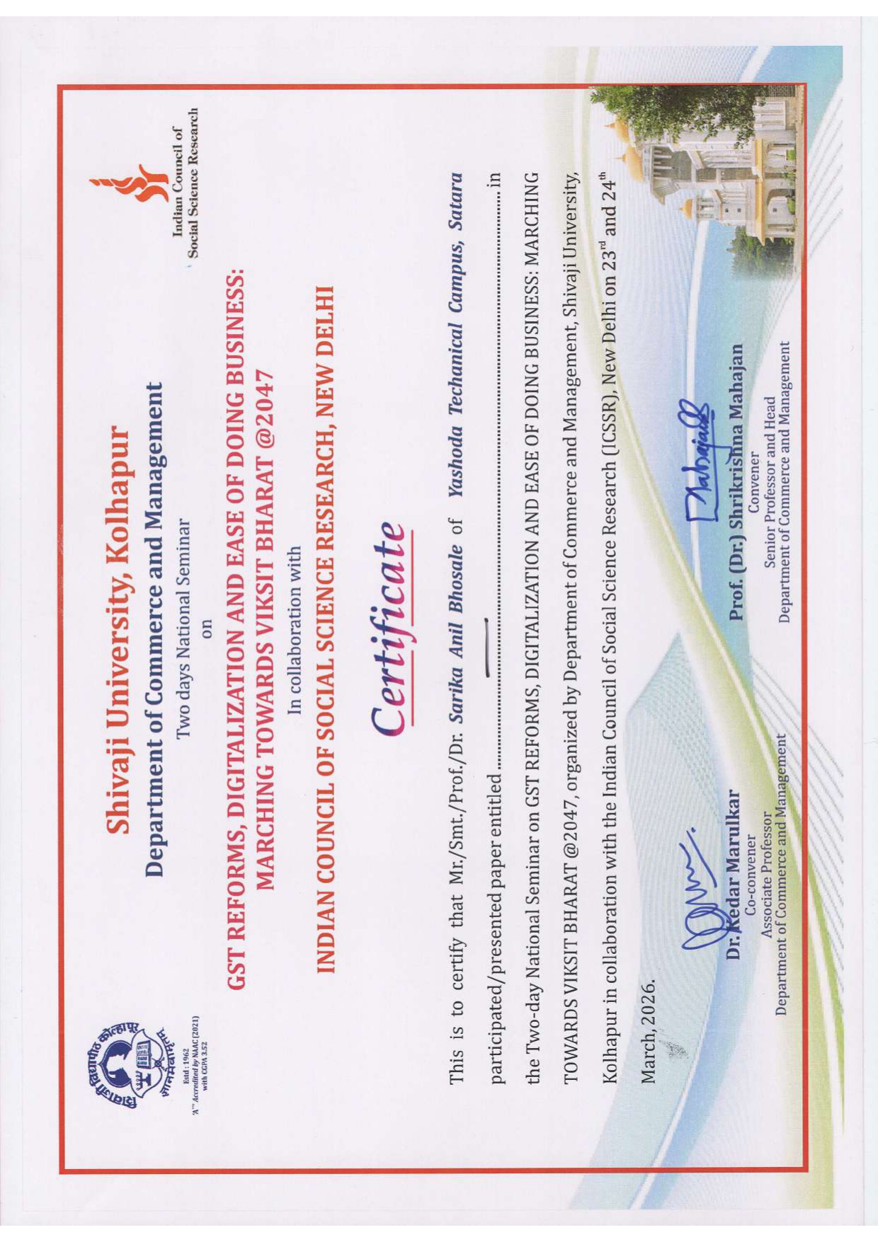 Two-Day National Seminar on GST Reforms, Digitalization and Ease of Doing Business: Marching Towards Vikasit Bharat @2047