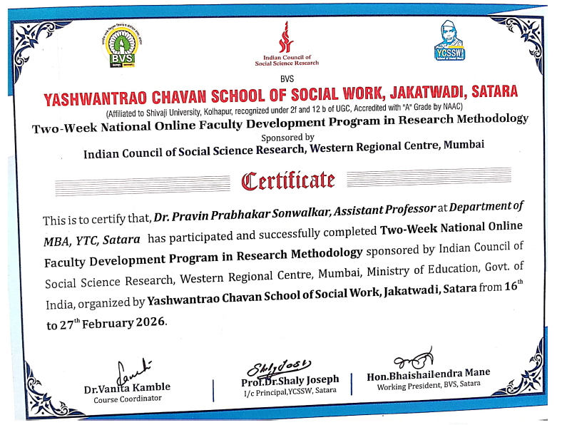 Departmental Faculty Achievements of MBA: